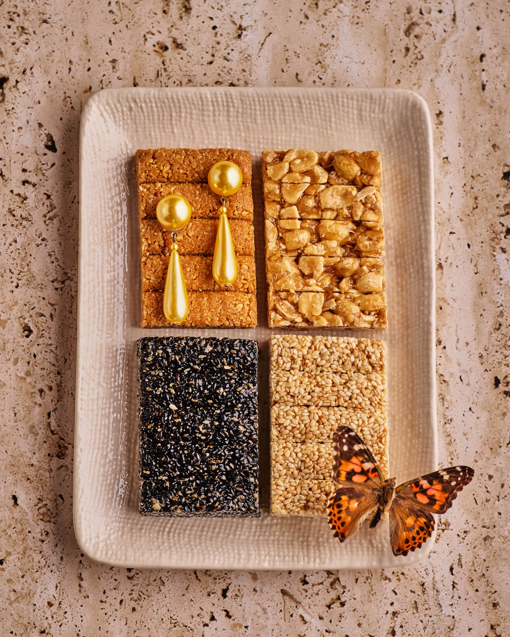 Our vinyl backdrop lays flat for immediate use, is easy to wipe clean and shoots beautifully with minimal glare.